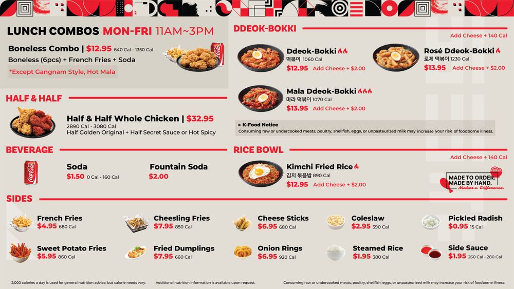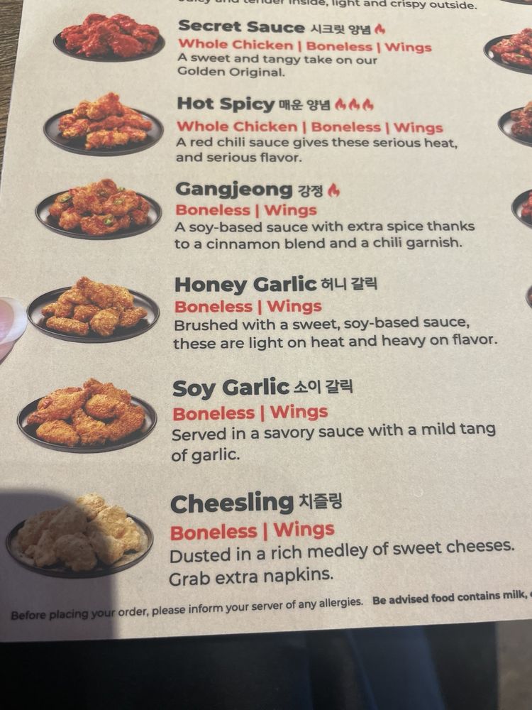 The boneless selections are equally impressive, featuring creations like the Honey Garlic Boneless and Spicy Galbi Boneless, both delivering unique tastes for just 16.74. Don’t miss out on their signature wings—try the Wings Of Fire if you dare, or savor the sweetness of Cheesling Wings.